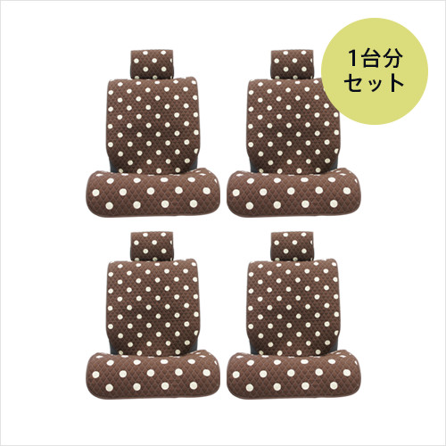 かわいいキルティングシートカバー・1台分(前席2枚+ベンチシート+後席2枚)・水玉チョコ